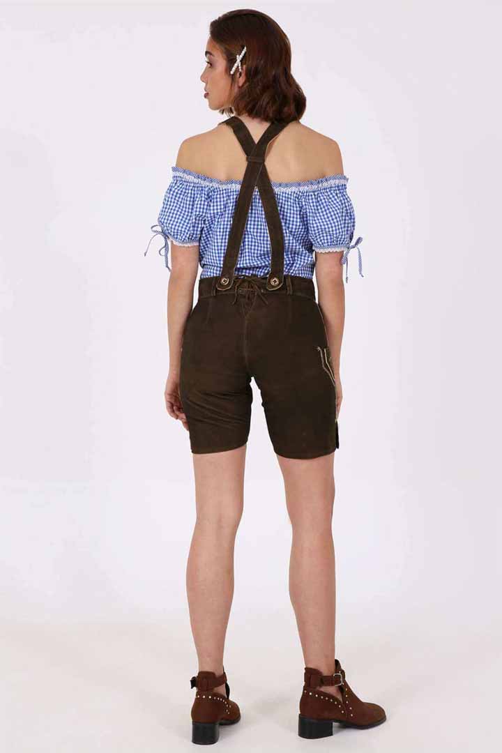 The Alpen Queen Lederhosen from Bavarian Attire is a deep chocolate brown color that gives off a sense of timeless style. The high-quality Goat Suede Leather makes the garment feel smooth and velvety while yet making it strong enough for busy events. Because of this, these Bavarian Lederhosen for Women are both comfortable and stylish.