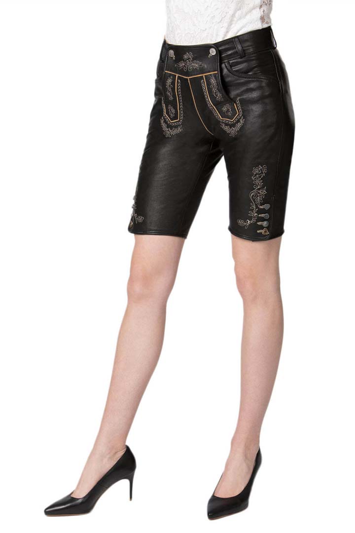 With these gorgeous Women’s Lederhosen, which elegantly combine feminine elegance with rugged heritage, you can up your festive game. Made from high-quality goat suede, the leather is supple and silky against the skin. Additionally, the rich onyx hue provides a dramatic and adaptable foundation for any traditional occasion.