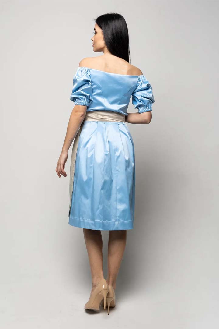 This stunning sky blue Bavarian Dirndl strikes a perfect balance between traditional heritage and contemporary chic. The bodice uses premium breathable cotton to deliver a smooth, crisp texture that feels lightweight on the skin. Moreover, the soft pastel shade adds a refreshing modern twist to classic folkwear. As a result, this Dirndl stands out beautifully at festive gatherings, cultural events, and seasonal celebrations.