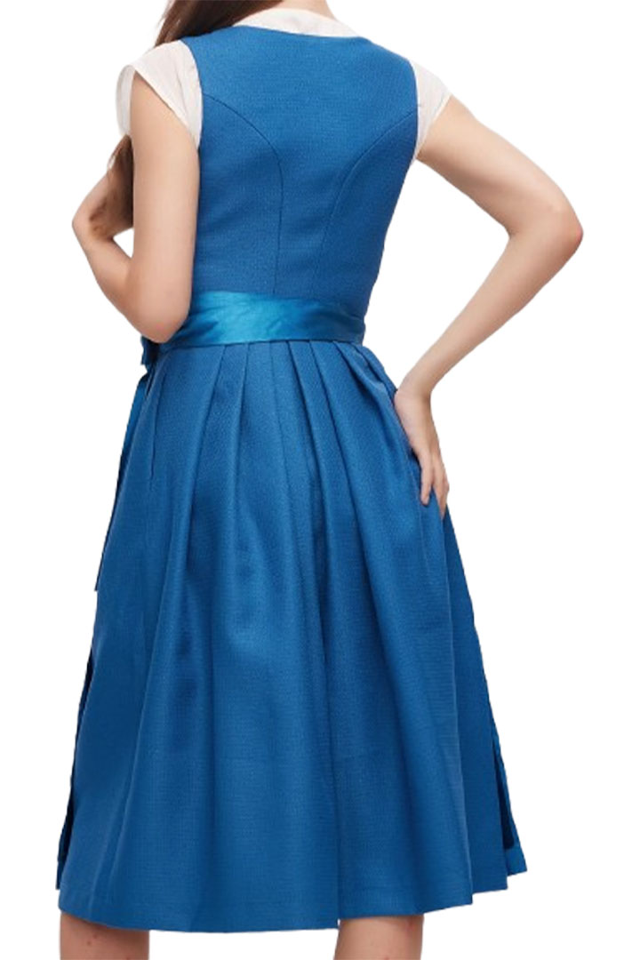 Wear this vivid blue cotton outfit to experience true Bavarian charm. Its airy fabric and sophisticated satin apron guarantee a comfortable, fashionable fit that respects traditional Alpine craftsmanship and grace, making it ideal for joyful events.