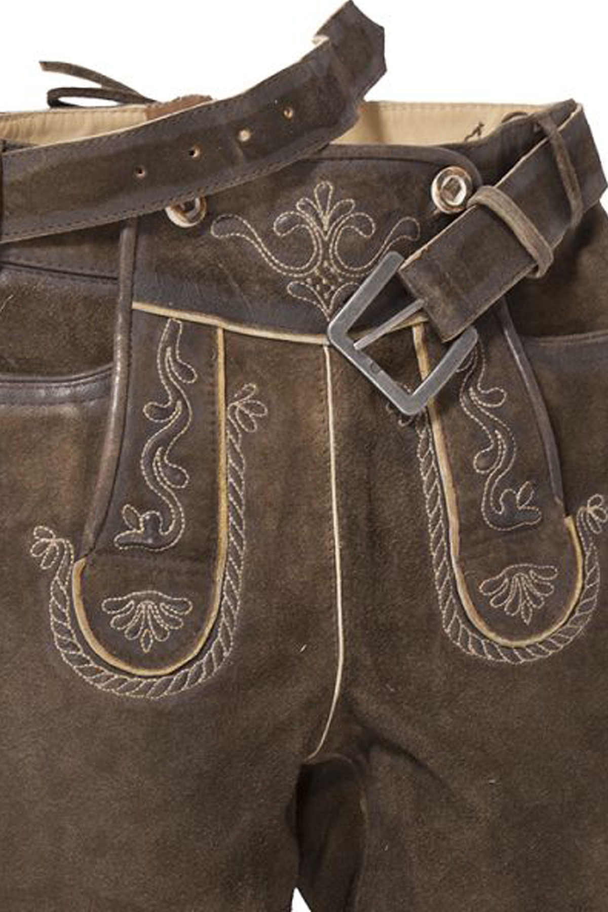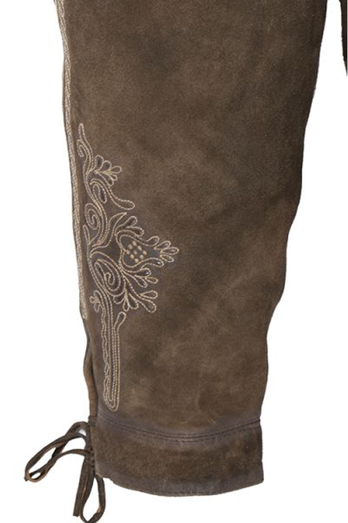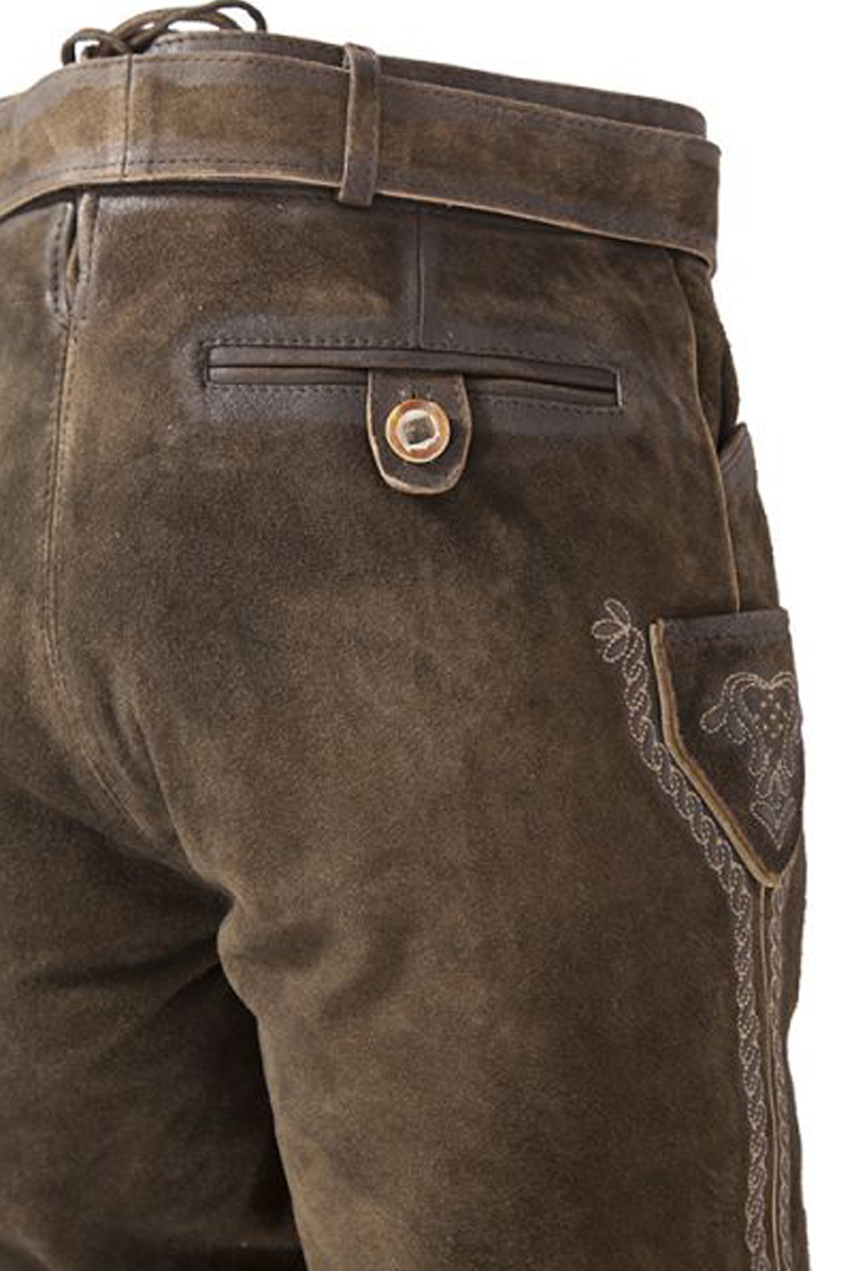 - Detail: Intricate Bavarian embroidery on pockets and legs.