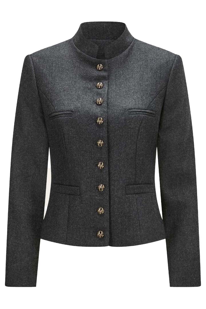 Leni Klum Jacket by Bavarian Attire showcases premium craftsmanship with high-quality, dense virgin wool. This material feels soft yet structured, so the jacket keeps a sharp, tailored silhouette while providing natural warmth. The charcoal grey tone creates a refined aesthetic that pairs beautifully with Dirndl Dresses. Moreover, the intricate metal buttons add authentic heritage charm to the modern cut. Because the wool is breathable, you stay comfortable throughout long festival days. Consequently, this jacket becomes the perfect outer layer when evening temperatures drop.