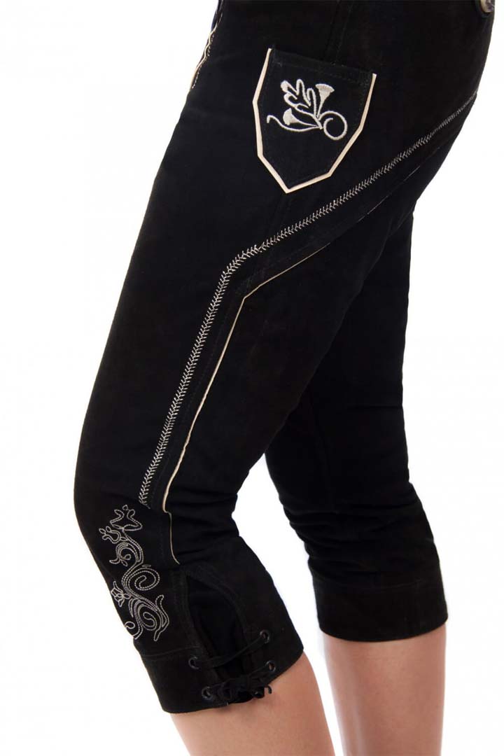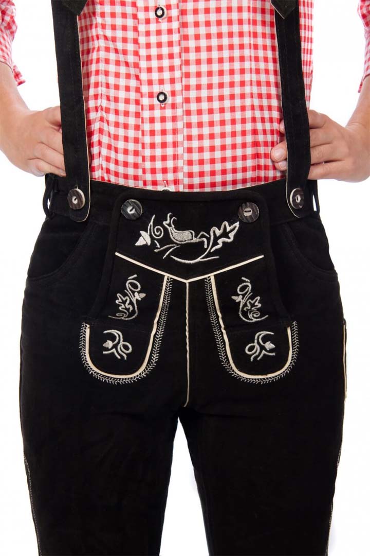 The Makatsch Lederhosen by Bavarian Attire is made of Premium Goat Suede Leather that feels smooth on the skin. This Women’s Bavarian Lederhosen comes in a rich black color that is more elegant than the usual brown variants. The suede fibers stay naturally fine, which keeps the leather supple and lets it conform to your body shape over time.