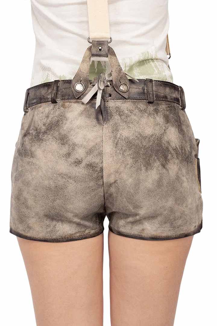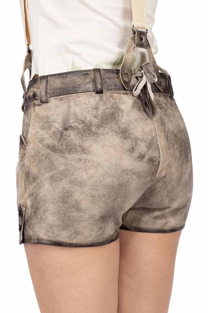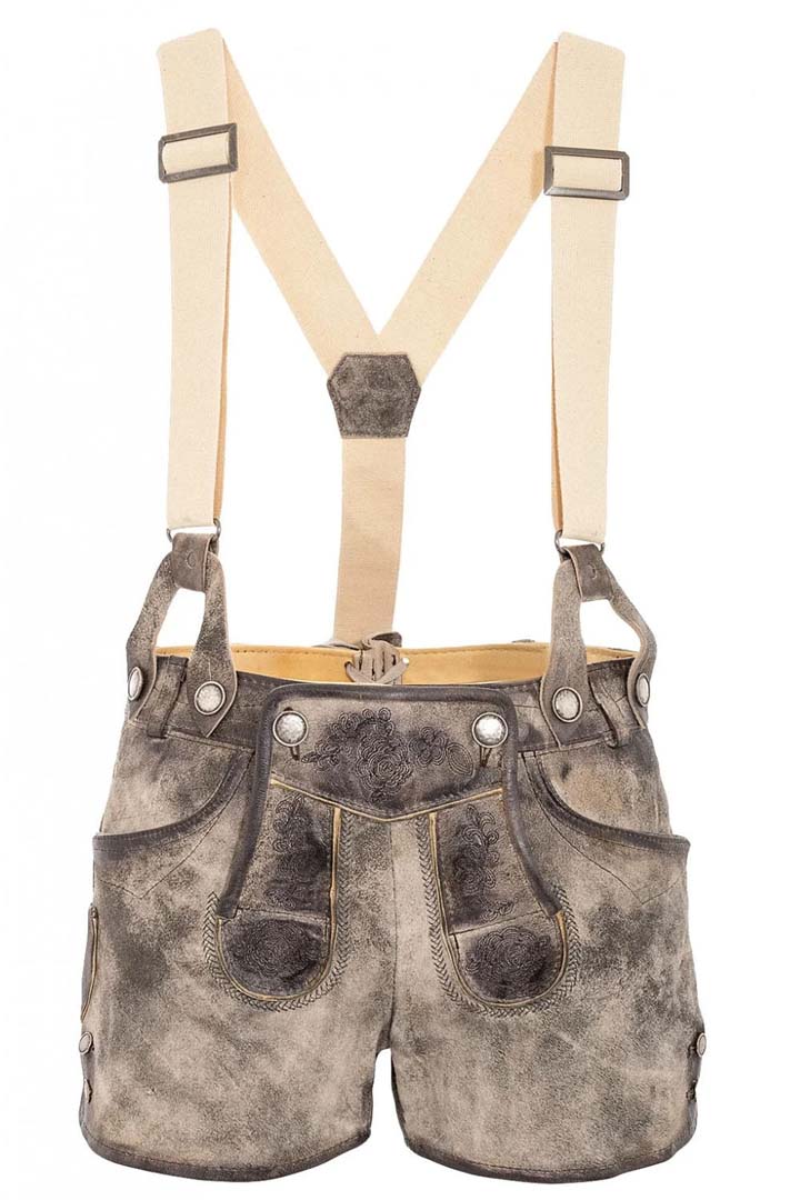 Experience the perfect blend of tradition and modern flair with our Nina Chuba Lederhosen, designed for standout festival style. We craft these shorts from premium Goat Suede Leather, delivering a velvety-soft feel with impressive durability. Moreover, the vintage grey tone features a distressed finish that creates an Authentic German Lederhosen Women look with striking character.