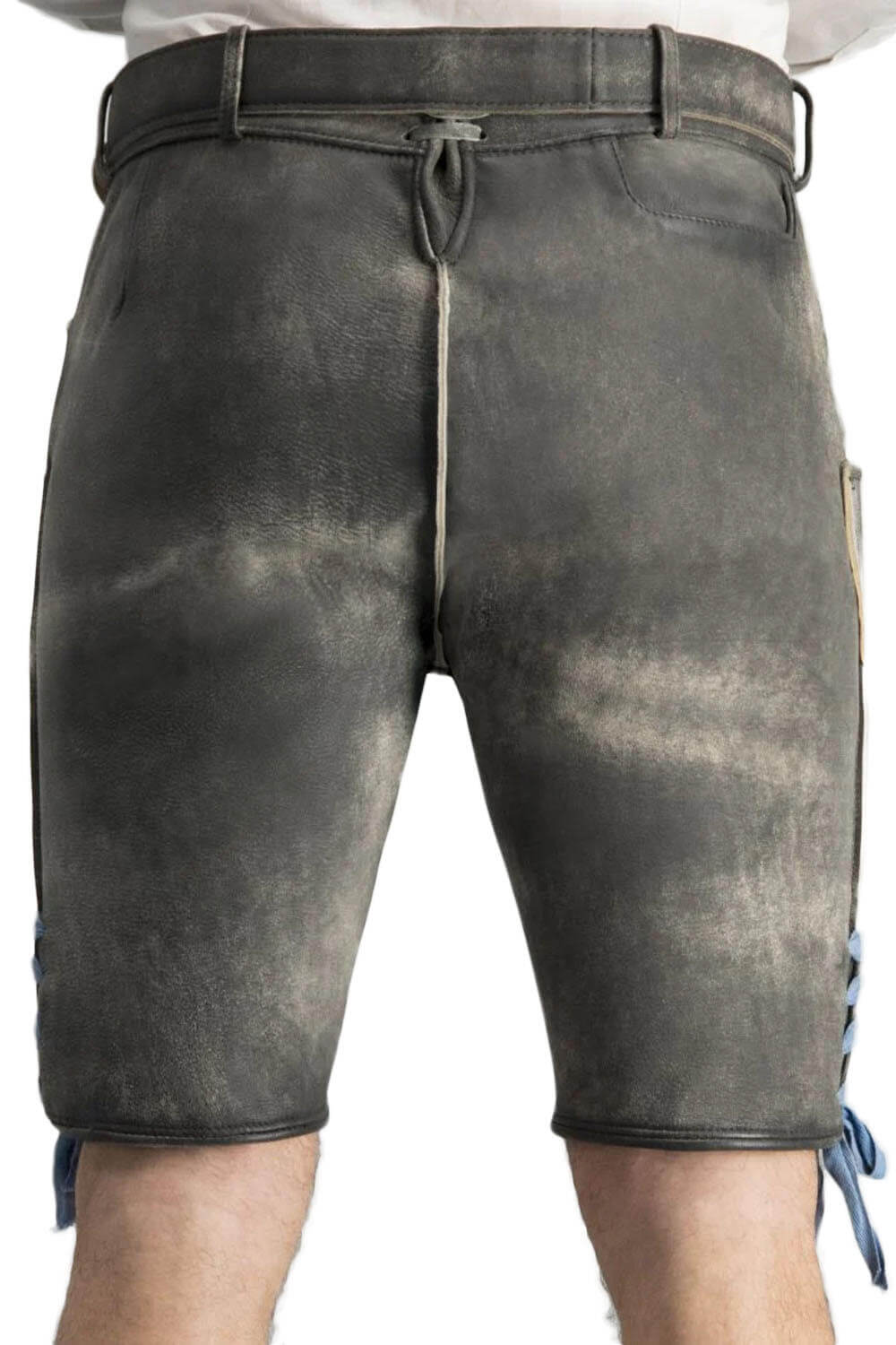 The Noel Robinson Lederhosen is constructed of real Goat Suede Leather. It has a deep, smokey charcoal hue and has a unique, worn-in texture. This structure makes sure that real Bavarian Lederhosen wear is very soft, long-lasting, and has a classic, old-fashioned look.