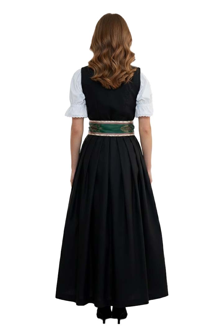 This exquisite Bavarian Dirndl uses premium breathable cotton to ensure a lightweight and comfortable feel during festive celebrations. Moreover, the midnight black bodice creates a striking contrast with the white floral embroidery along the neckline. Because the cotton fabric offers both softness and structure, the dress drapes elegantly while feeling gentle against the skin. As a result, the silhouette remains polished throughout the day.